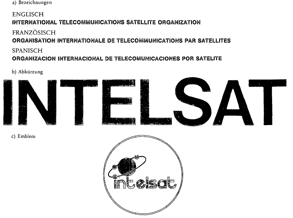 Auf Grund des § 4 Abs. 1 Z 1 lit. c des Markenschutzgesetzes 1970, BGBl. Nr. 260, in der Fassung der Markenschutzgesetz-Novelle 1977, BGBl. Nr. 350, wird im Einvernehmen mit dem Bundesminister für Auswärtige Angelegenheiten kundgemacht, daß die in der Anlage angeführten Bezeichnungen der Internationalen Organisation für Fernmeldesatelliten in drei Sprachen, die Abkürzung der Bezeichnungen sowie das Emblem dieser Organisation von der Registrierung nach dem Markenschutzgesetz ausgeschlossen sind.
