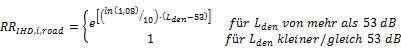 3.2.2. Für ischämische Herzkrankheit IHD im Falle von Straßenverkehrslärm wird der Anteil der Fälle der spezifischen gesundheitsschädlichen Auswirkung in der Bevölkerung, die einem mittels Berechnung auf Umgebungslärm zurückzuführenden relativen Risiko RR ausgesetzt ist, für die Lärmquelle x (Straßenverkehr), die gesundheitsschädliche Auswirkung y (IHD) und die Inzidenz i folgendermaßen berechnet: