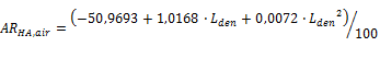 Für die Berechnung des absoluten Risikos AR sind in Bezug auf die gesundheitsschädlichen Auswirkungen von starker Belästigung HA folgende Dosis-Wirkung-Relationen zu verwenden: