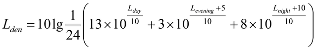 (1) Der L den (Tag-Abend-Nacht-Lärmindex) in Dezibel (dB) ist gemäß Anhang I der Richtlinie 2002/49/EG über die Bewertung und Bekämpfung von Umgebungslärm, ABl. Nr. L 189 vom 18.07.2002 S. 12, mit folgender Gleichung