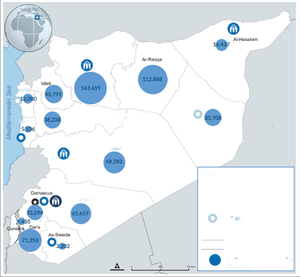 Die Karte von UNHCR zeigt die Aufteilung der seitAnfang 2025 zurückgekehrten Syrer nach Gouvernements: