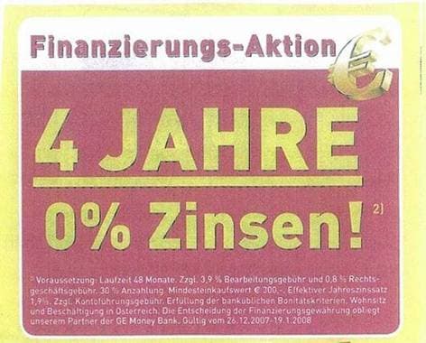 Der nach § 14 Abs 1 UWG klagelegitimierte Verein zur Wahrung von Verbraucherinteressen begehrte, der Beklagten aufzutragen, es im geschäftlichen Verkehr zu unterlassen, a) in ihrer Werbung, insbesondere in Werbeprospekten, ihren Kunden die Finanzierung des Kaufpreises über zinsenlose Kredite in Aussicht zu stellen hilfsweise b): den unrichtigen Eindruck zu erwecken, sie biete ihren Kunden die Finanzierung des Kaufpreises über zinsenlose Kredite an -, etwa durch die blickfangartig hervorgehobene Ankündigung „0 % Zinsen“, wenn die Inanspruchnahme des Kredits tatsächlich mit Entgelten, etwa Bearbeitungs und Kontoführungsgebühren und damit mit einem Effektivzins von beispielsweise 3,9 % oder 5,02 % verbunden ist; der Kläger begehrte ferner, ihn zur Urteilsveröffentlichung zu ermächtigen. Die Ankündigung verstoße gegen Z 20 Anhang zum UWG, weil sie als Angebot der Vermittlung eines unverzinsten Darlehens, somit einer Dienstleistung zu verstehen und daher an diesem Tatbestand zu messen sei. Als unvermeidbare Kosten nach der genannten Bestimmung seien jedoch nur die staatlichen Rechtsgeschäftsgebühren anzusehen, nicht hingegen die Bearbeitungs- und Kontoführungsentgelte. Überdies sei die Ankündigung irreführend gemäß § 2 Abs 1 UWG. Dem Umworbenen werde ein besonderer Preisvorteil (§ 2 Abs 1 Z 4 UWG) vorgegaukelt, der aufklärende Hinweis auf die anfallenden Bearbeitungs und Kontoführungsgebühren sei in den Prospekten kaum zu entziffern und im Online Katalog schlicht unleserlich. Das Versprechen einer zinsenfreien Kreditierung der Kaufpreisforderung sei geeignet, den Durchschnittsverbraucher einerseits zum Kauf eines Produkts und andererseits auch zur Inanspruchnahme eines Kredits zu bewegen, wovon er bei Kenntnis der wahren Umstände Abstand genommen hätte.