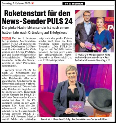 [6] PULS 24 verbreitete über APA-OTS am 31. 1. 2020 folgende Meldung (Auszug):