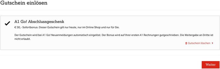 [15] Klickte der Nutzer auf die Anzeige, leitete ihn die Beklagte auf die Website https://shop.a1.at weiter. Dort warb die Beklagte mit einem „A1 Go! Abschlussgeschenk“ im Wert von 30 EUR und „Dieser Gutschein gilt nur heute, nur im Onlineshop und nur für Sie“: