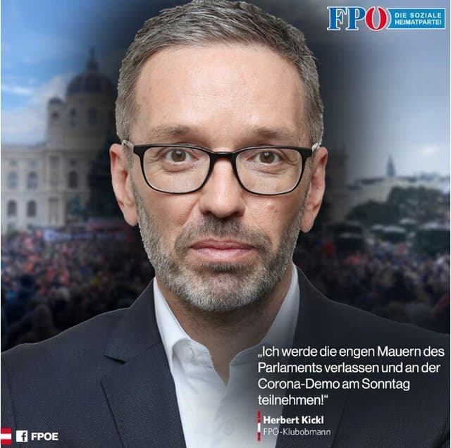 Die Situation ist ernst. FPÖ-Klubchef Herbert Kickl hat sich als Hauptredner auf einer Coronaleugner-Kundgebung angekündigt: 'Ich werde die engen Mauern des Parlaments verlassen.' Das ist eine gefährliche Drohung!