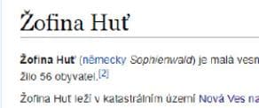 4.1 Die von der Antragstellerin erwähnte Ortschaft heißt auf Tschechisch Žofina Huť (Wikipedia):