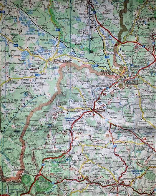 Žofina Huť findet sich nordwestlich von Gmünd und nahe bei Nová Ves nad Lužnicí (südwestlich davon). Žofínský prales findet sich knapp westlich der Staatsgrenze auf der Höhe des Nebelsteins.