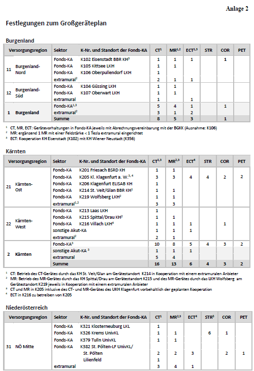 2. §4 und Anlage 2 der Verordnung der Gesundheitsplanungs GmbH zur Verbindlichmachung von Teilen des Österreichischen Strukturplans Gesundheit 2017 (ÖSG VO 2018), kundgemacht am 9. Juli 2018 unter Nr 1/2018 im RIS (Sonstige Kundmachungen/Strukturpläne Gesundheit) in der Fassung der Verordnung der Gesundheitsplanungs GmbH zur Verbindlichmachung von Teilen des Österreichischen Strukturplans Gesundheit 2017 (ÖSG VO 2019), kundgemacht am 5. November 2019 unter Nr 6/2019 im RIS (Sonstige Kundmachungen/Strukturpläne Gesundheit)