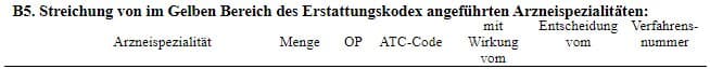 in Pkt. B5 (Streichung von im Gelben Bereich des Erstattungskodex angeführten Arzneispezialitäten) der 207. Änderung des Erstattungskodex, kundgemacht als Amtliche Verlautbarung der österreichischen Sozialversicherung im Internet Nr 77/2021 am 23.12.2021, […]