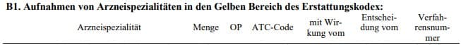 Aufnahme von Arzneispezialitäten in den Erstattungskodex